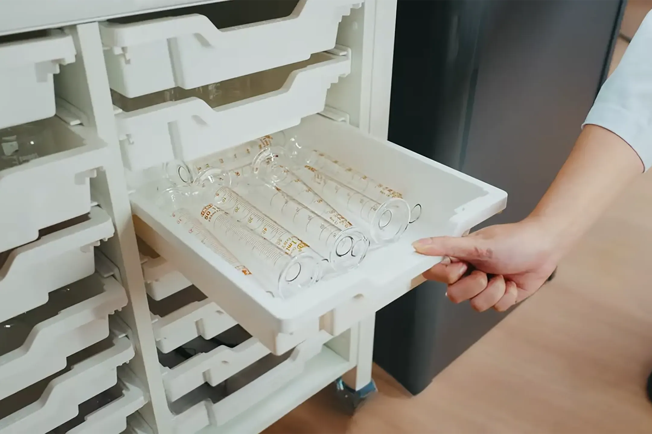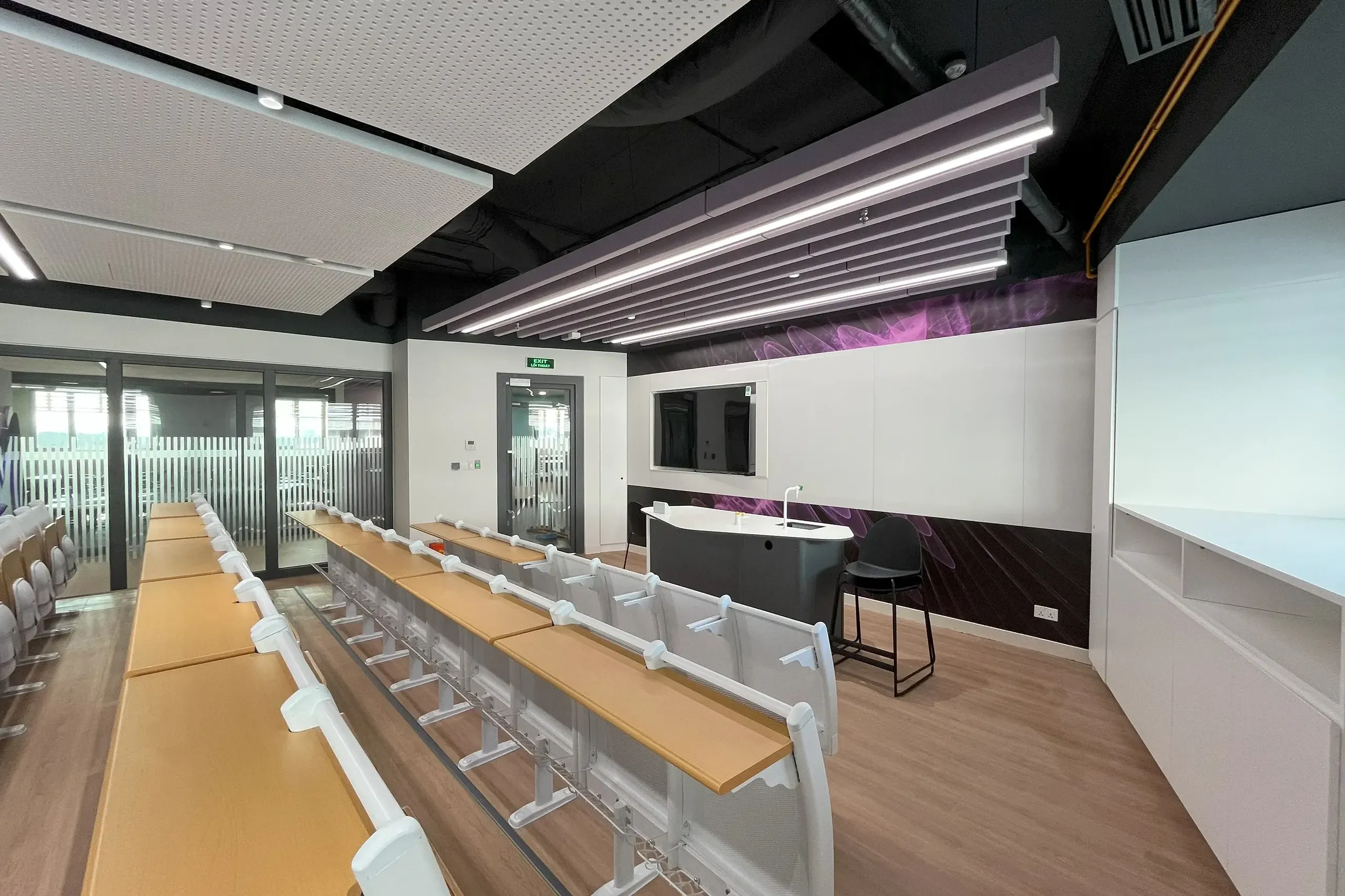 A standout feature is the Mobiline recirculatory fume cupboard—fully equipped with gas, water, and electrical supplies—that can be safely shared across all three labs via docking stations, maximising accessibility and efficiency.