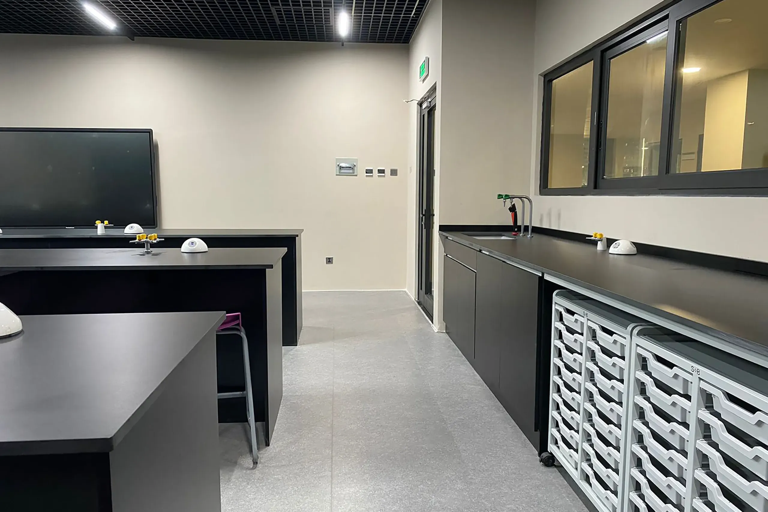 The colour scheme chosen for the laboratories aligns with Brighton College UK, ensuring a consistent and cohesive brand identity. The school labs are highly functional, providing ample working and circulation space for students and teachers. They also benefit from our Mobiline re-circulatory fume cupboard for safe hands-on experiments.