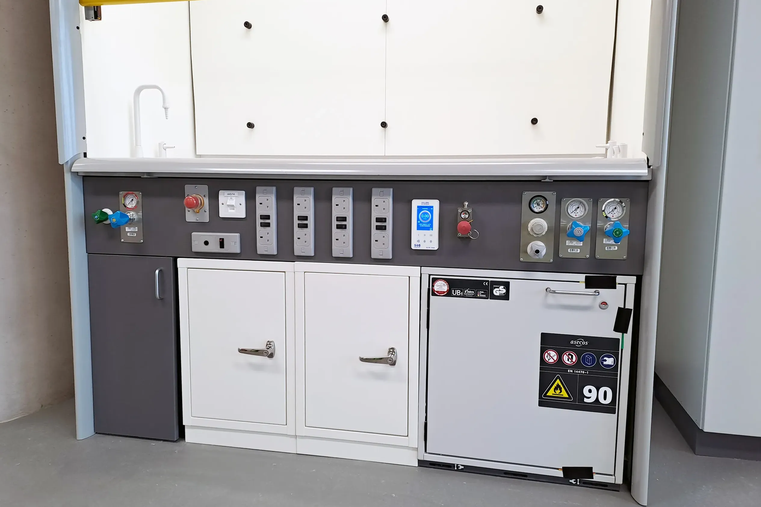 Our scope of work included a combination of Ecoline benchtop and walk-in fume cupboards, fitted with automatically closing sashes to enhance user protection and specialist storage to ensures safe and secure storage of hazardous chemicals.