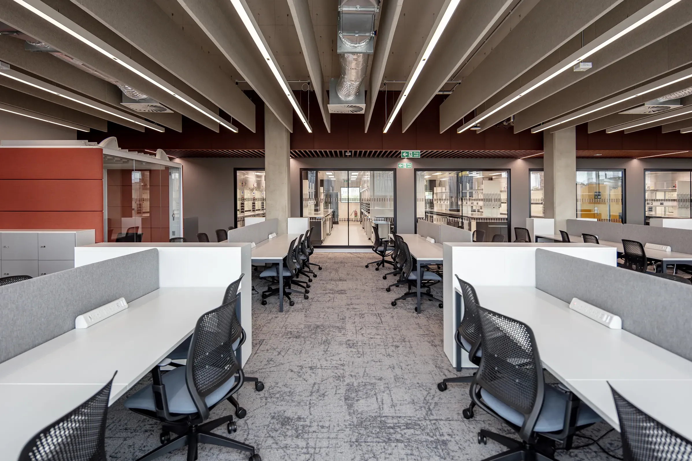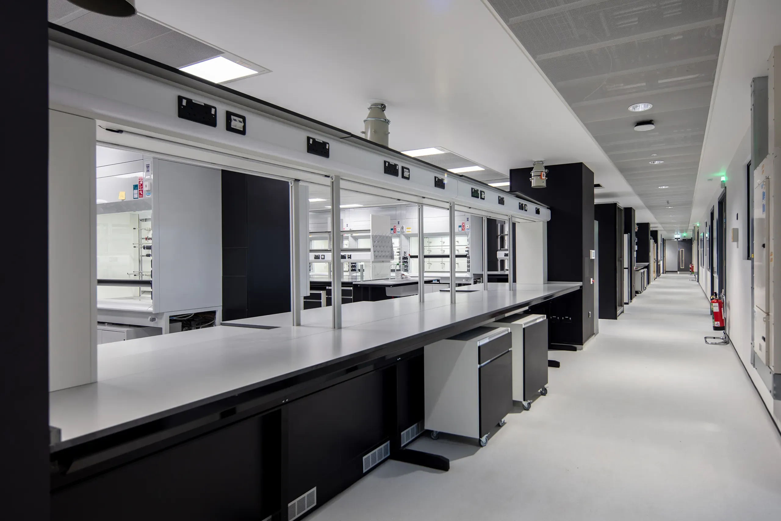 The new building is a sustainable hub, designed by Associated Architects to offer the best possible laboratory spaces and maximize energy efficiency throughout. The facility achieved both EPC A (14) and is on track for BREEAM Excellent ratings, positioning the building in the top 10% of UK new non-domestic buildings for sustainability performance.