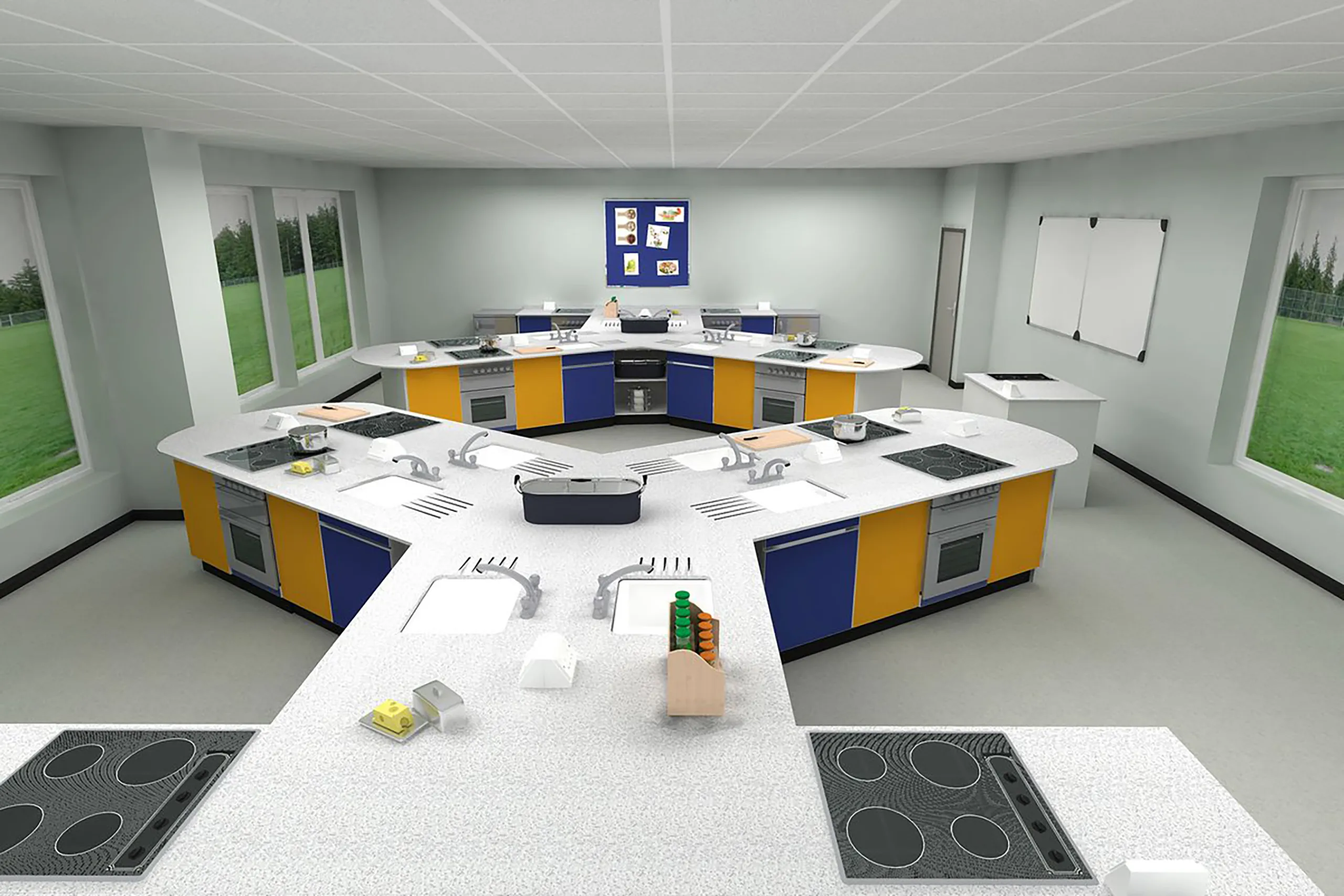 The school chose the exciting new propeller design with Corian work surfaces for the Food Technology Suite. A combination of Saturn circular and Mercury ovoid workstations with Corian work surfaces and the unique integrated moulded service housing for the Science Laboratory. The designs were chosen in order to facilitate an enquiry based collaborative approach to the teaching of both subjects and to attracts students to STEM subjects.