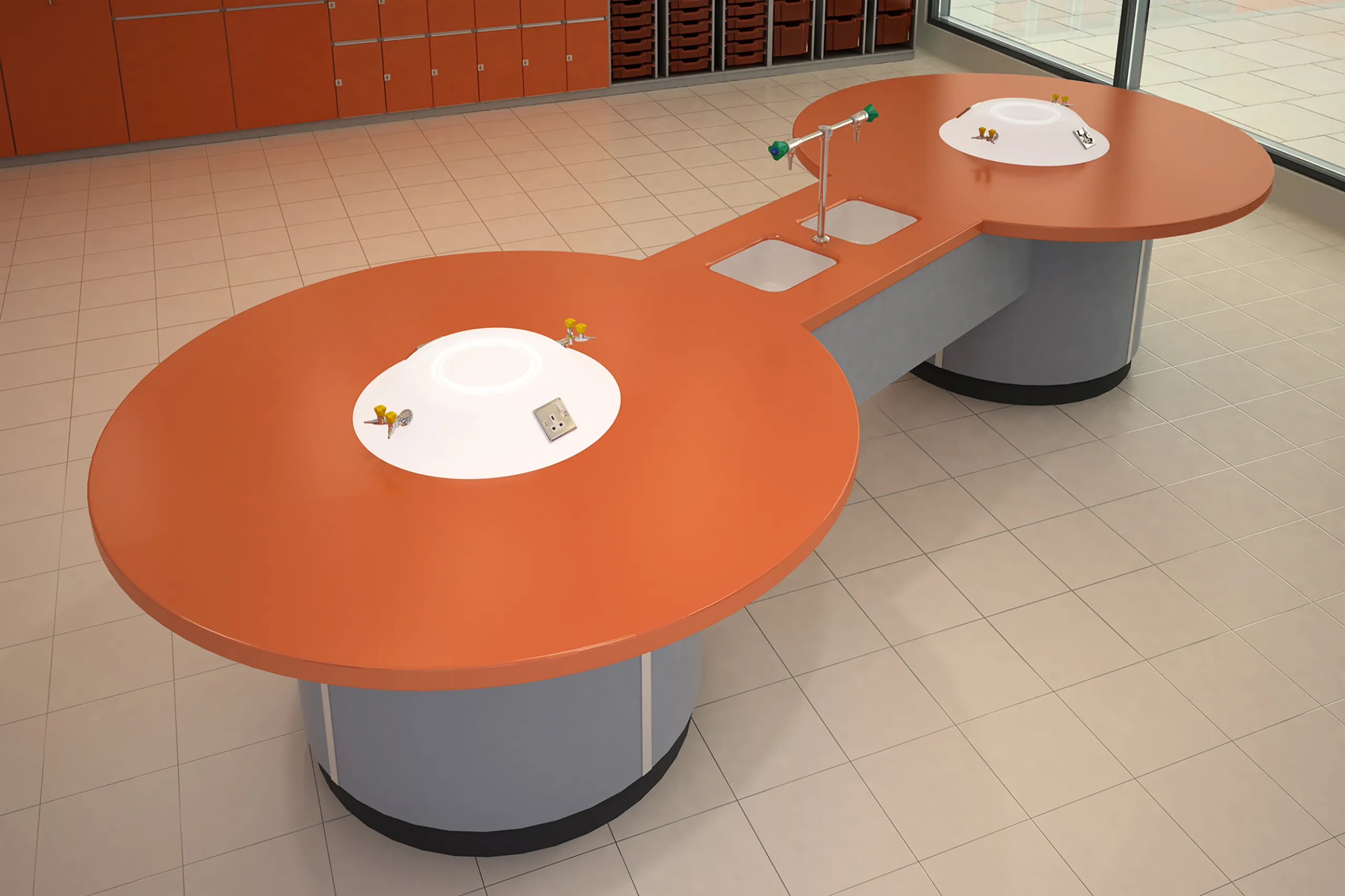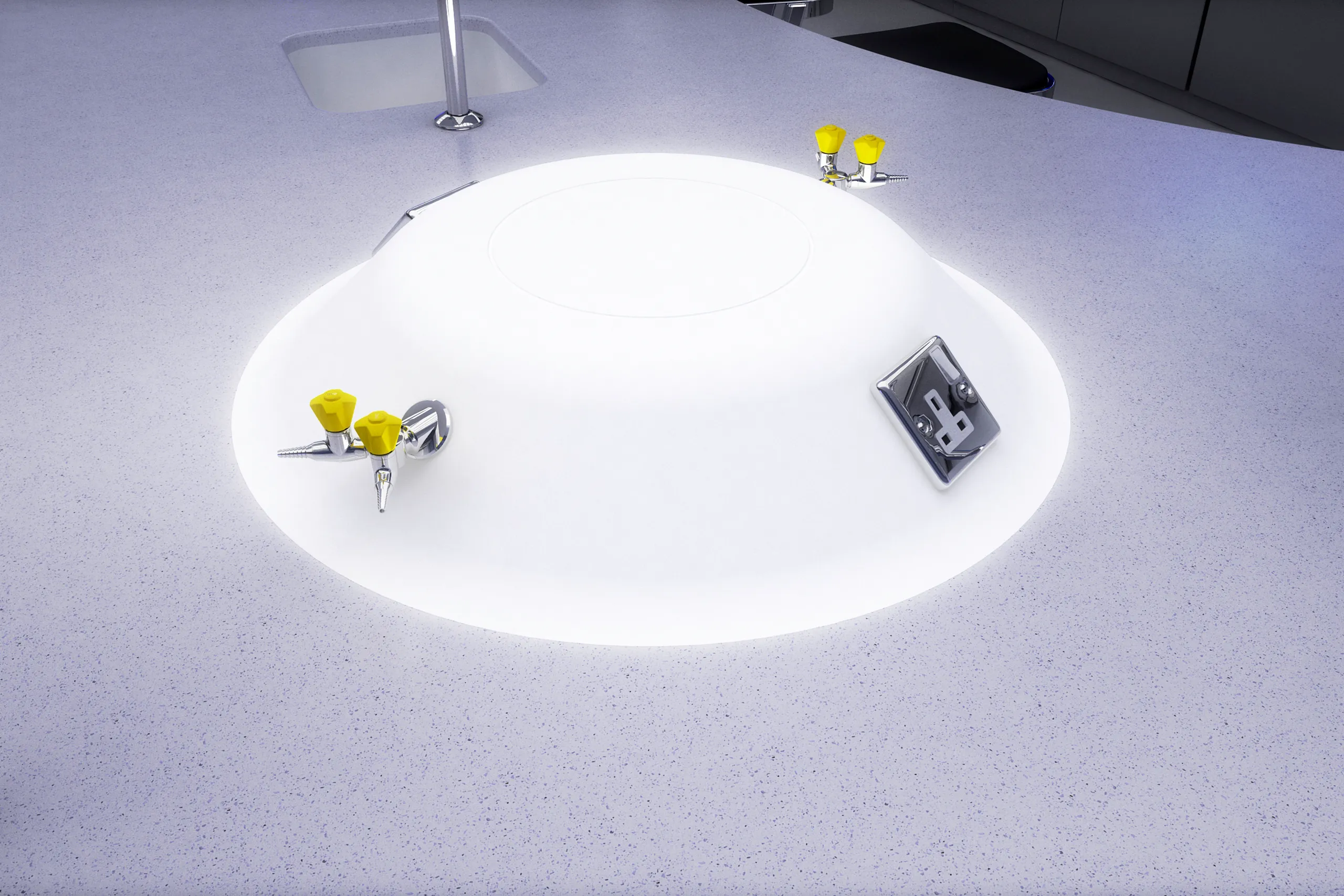 All work surfaces, including the Teacher’s demonstration desk and perimeter benching, will have corian worktops and sinks, that are not only aesthetically compelling but will also last a lifetime due to their renewability and overall qualities.