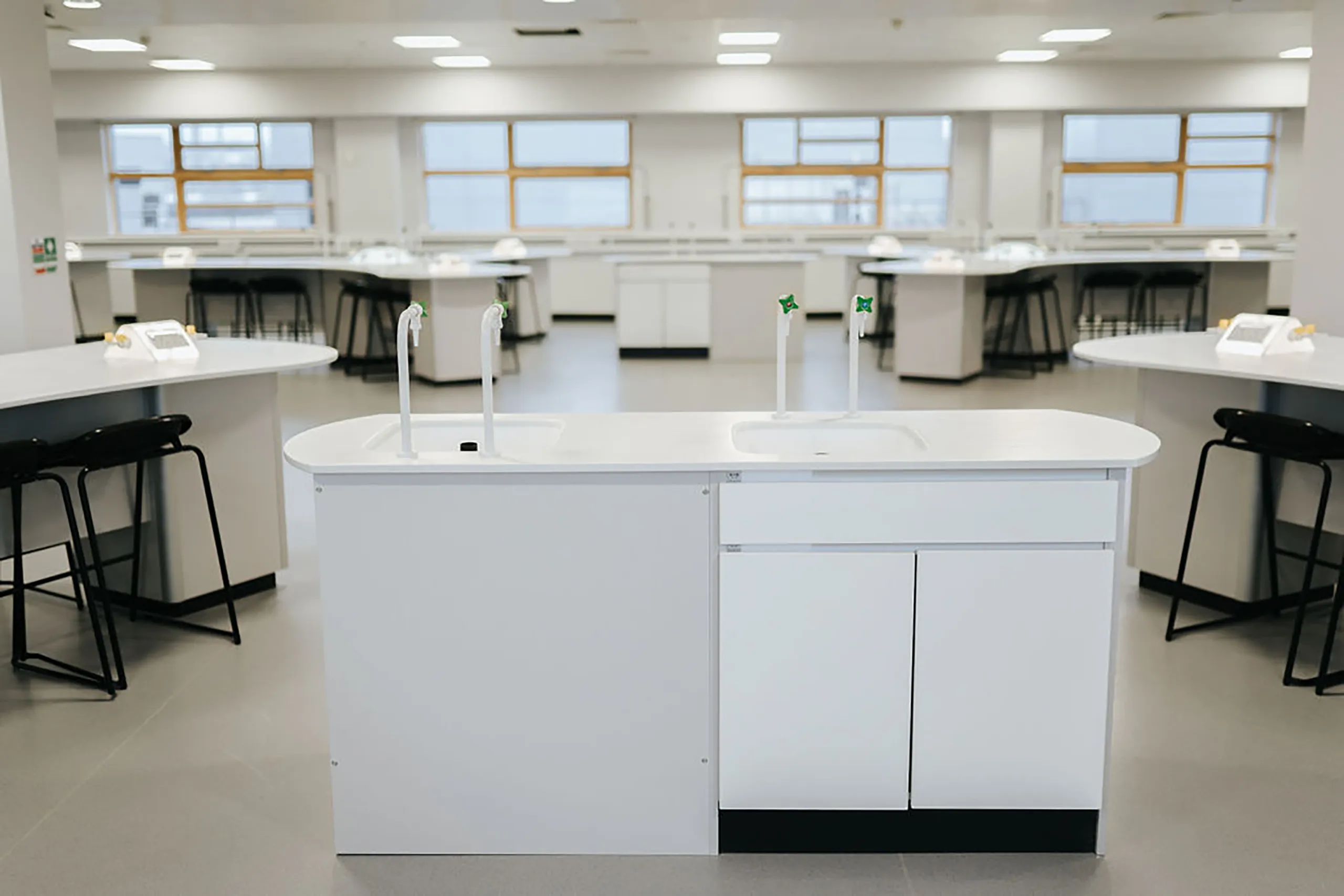 Enhance the teaching experience with a sleek design that incorporates a perfect blend of functionality and aesthetics. Include sinks and dry services and facilitate storage with the addition of casework.