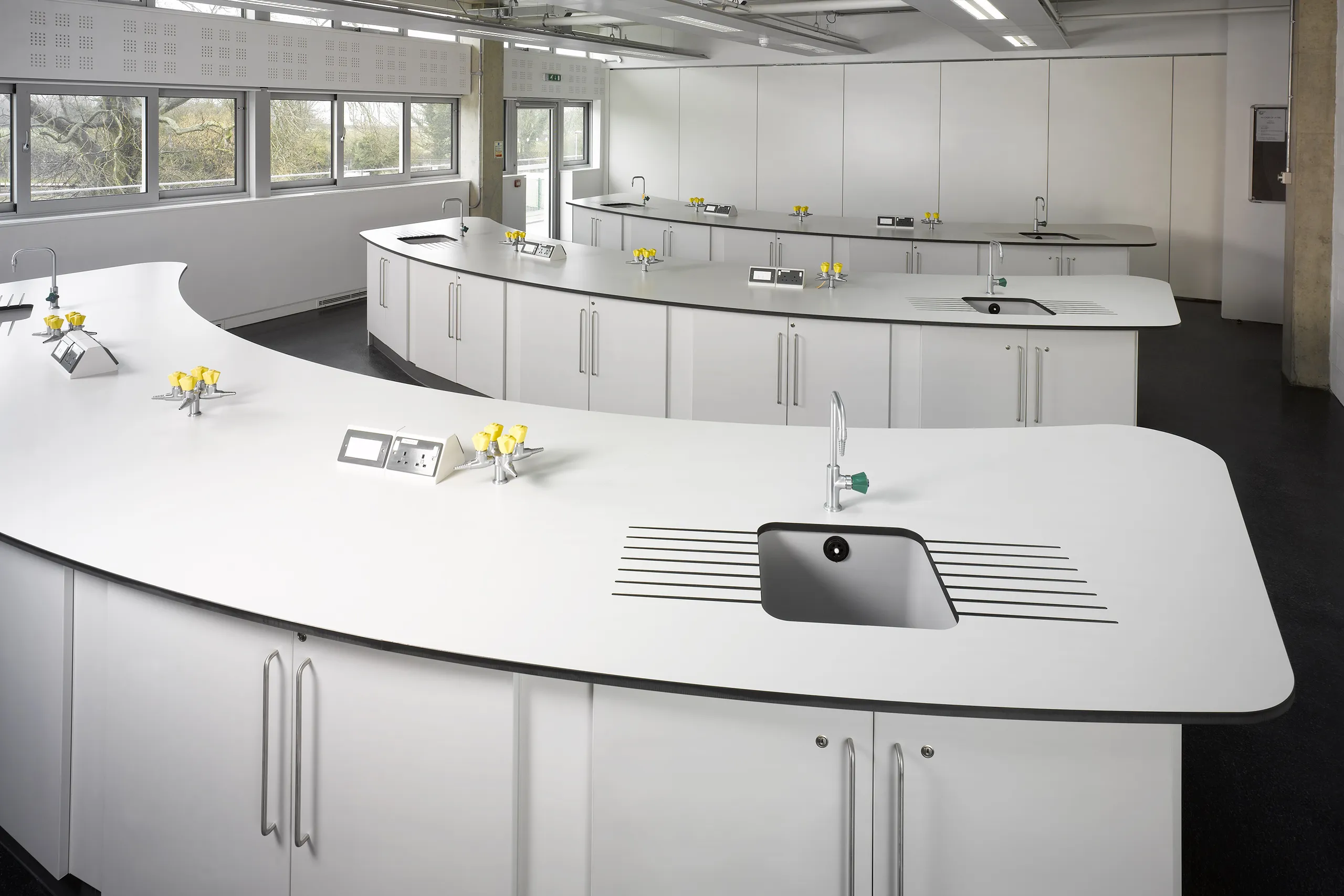 Left: Saturn Light School Furniture System | Right: The Chemistry Lab feature a combination of Saturn and Mercury science workstations