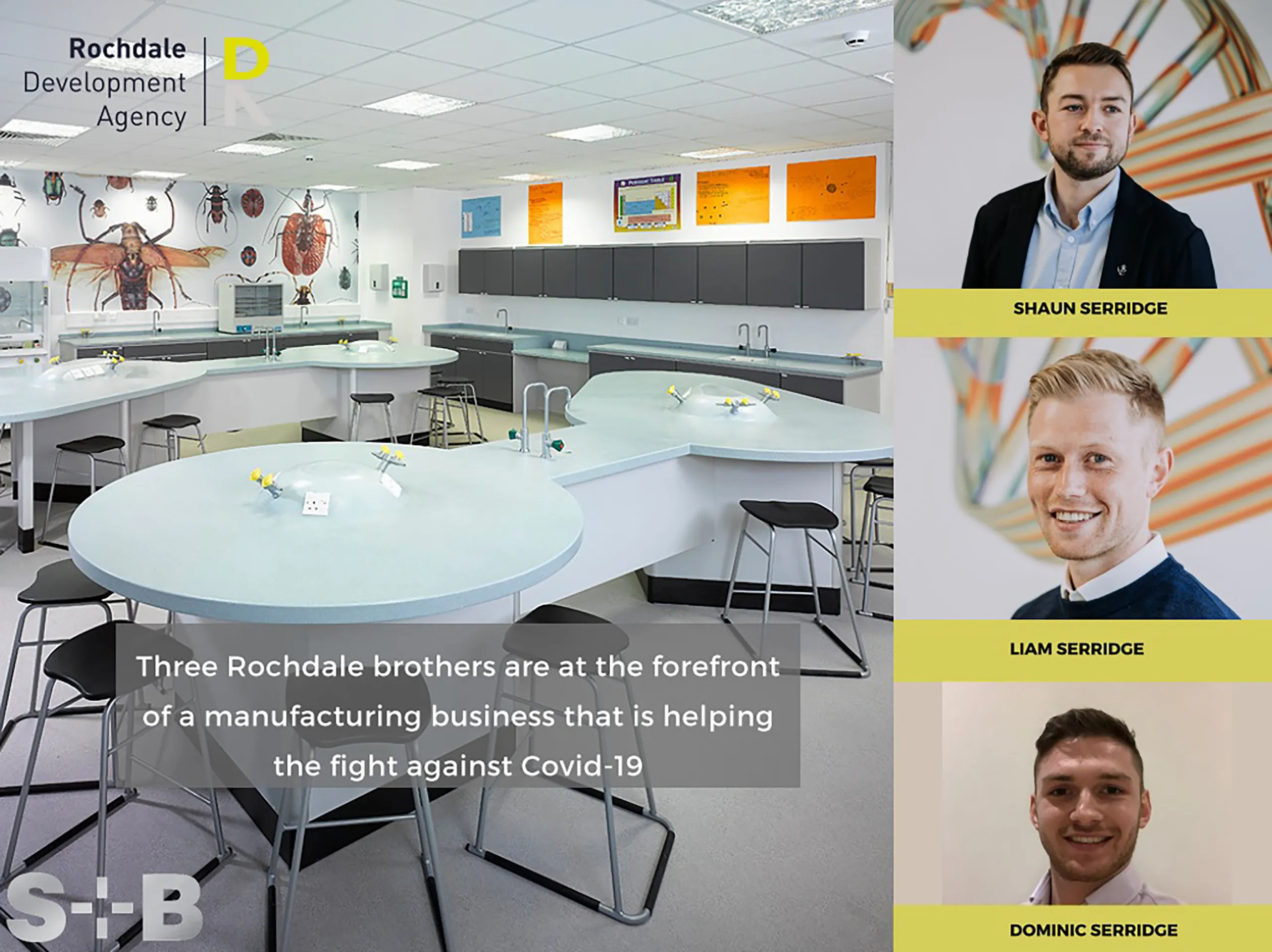 SB Labs and Shaun and Liam Serridge, our Sales Director and International Sales Manager, together with their brother Dominic, were featured in the Rochdale Development Agency News.