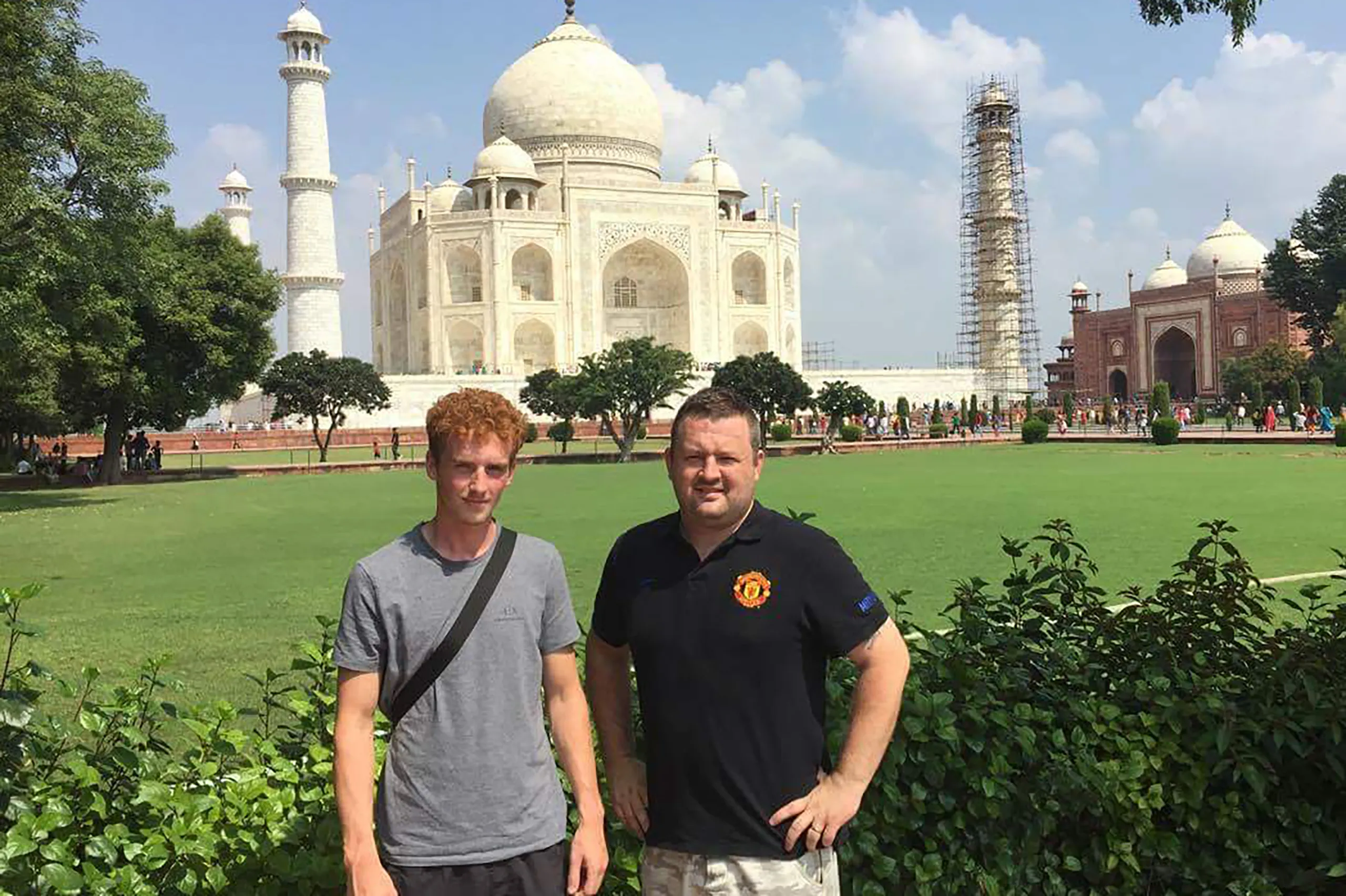 Gareth and Josh visit the Taj Mahal when working on the Kangaroo School project in India.