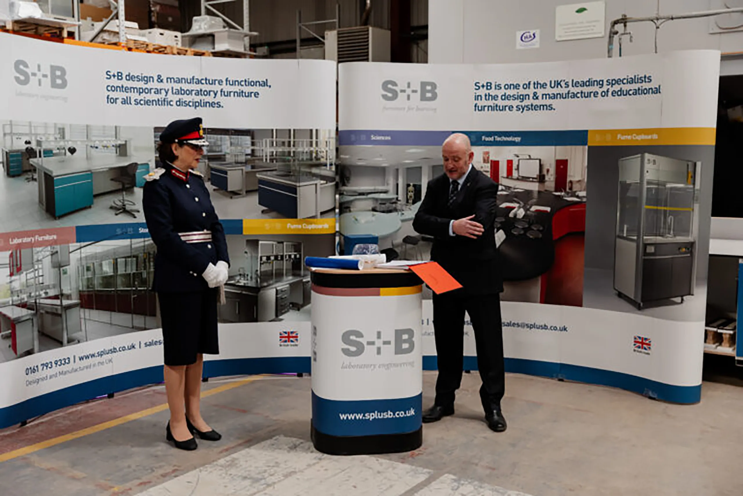 Craig Norris, the Operations Director of SB Labs and The Lord Lieutenant of Greater Manchester, Mrs Diane Hawkins