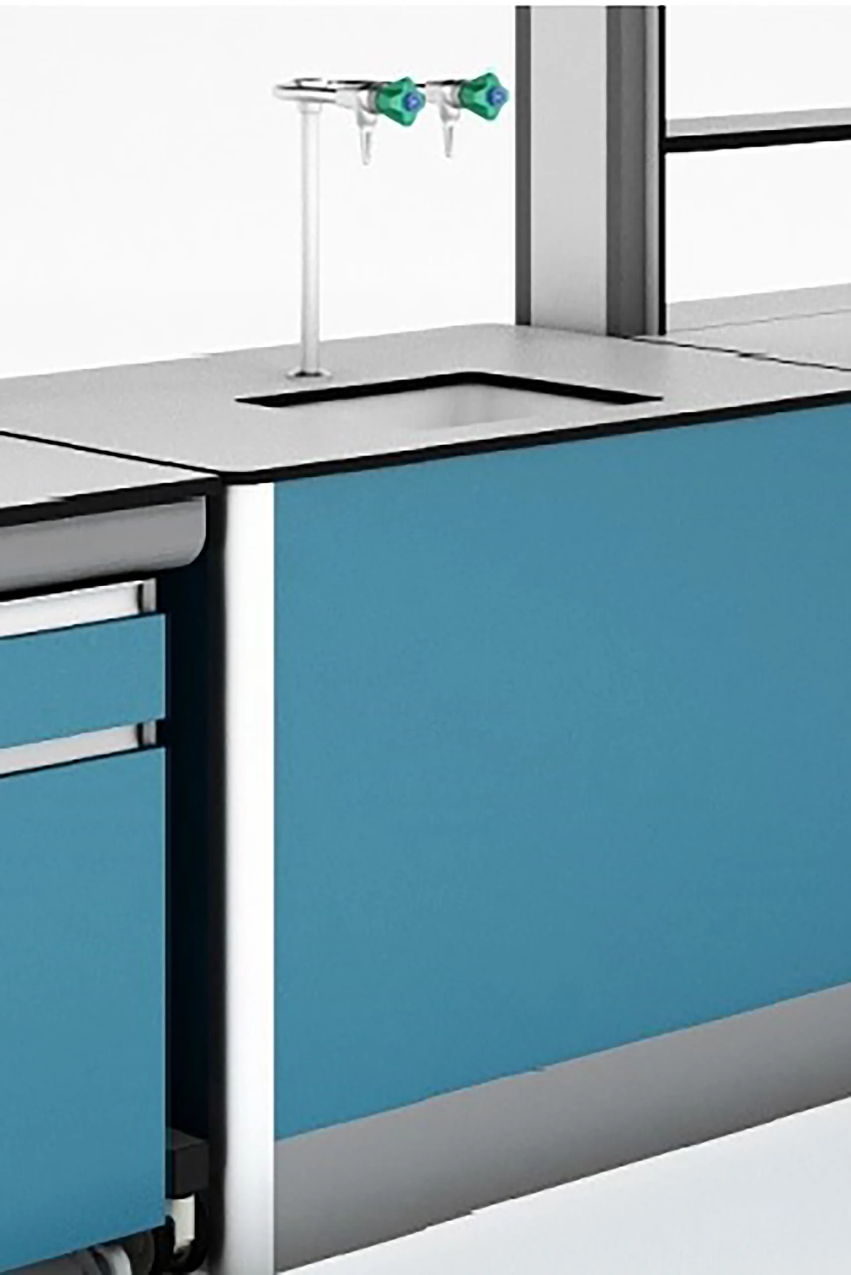 In addition, we will also provide Trespa Toplab Base service pods with corner posts made of extruded aluminum, providing a very robust structure and neat housing for the chemical-resistant Trespa cladding panels.